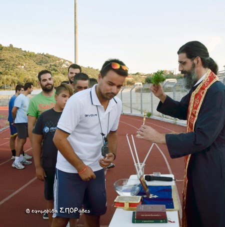 Αγιασμός πραγματοποιήθηκε στο δημοτικό στάδιο Σκοπέλου για το ποδοσφαιρικό τμήμα του Α.Ο. Σκοπέλου από τον π. Χρήστο παρουσία του προέδρου της ομάδας Βασίλη Ρόδιου, μελών της διοίκησης και του γενικού αρχηγού του ποδοσφαιρικού τμήματος Μανώλη Γαρουφαλή.