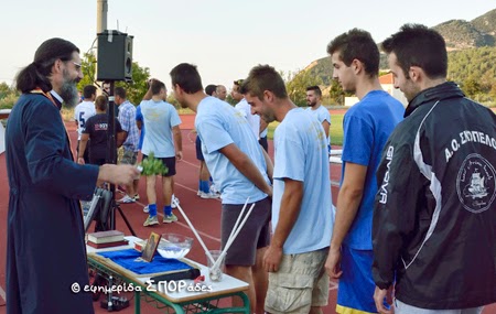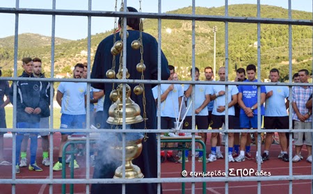 Μετά τις ευχές για "καλή αγωνιστική χρονιά με υγεία και επιτυχίες"ποδοσφαιριστές και προπονητές πέρασαν στο χόρτο για την πρώτη προπόνηση εν όψει των αγωνιστικών υποχρεώσεων που αναμένεται να αρχίσουν τέλος Σεπτεμβρίου ή αρχές Οκτωβρίου.