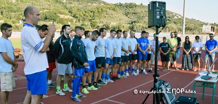 Μετά τον Αγιασμό ο πρόεδρος του Α.Ο. Σκοπέλου καλωσόρισε εκ μέρους της διοίκησης παλιούς και νέους αθλητές, ευχήθηκε πάνω απ'όλα υγεία σε όλους και ζήτησε να δώσουν όλοι τον καλύτερο εαυτό τους σε μια περίοδο που η κοινωνία της Σκοπέλου δείχνει ότι βρίσκεται ενεργά πλέον κοντά στην ομάδα και αυτό το αποδεικνύει και εμπράκτως.